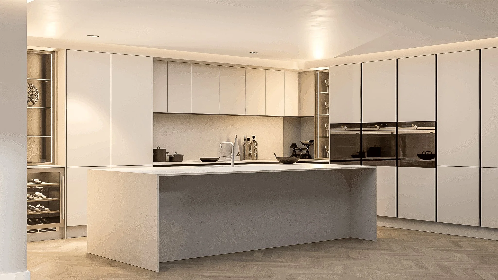 Motion Grey reinterprets a warm grey limestone finish unique to the Silestone range. Its subtle two-tone background and granite-like texture add depth and movement, with warm, delicate veining scattered across the surface for a refined, contemporary look.
